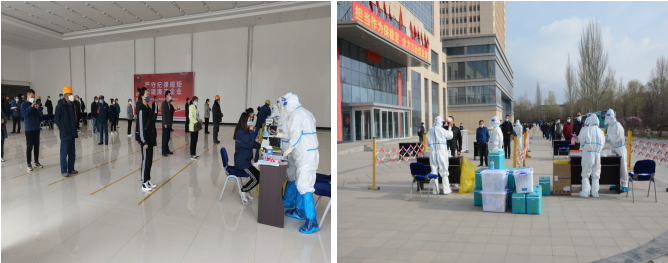 在疫情防控緊要時(shí)期,主動(dòng)配合落實(shí)核酸檢測等防控措施。多頻次聯(lián)系大通縣疫情防控指揮部及北川園區(qū)管委會(huì),于4月14日、4月17日開展兩輪核酸檢測行動(dòng)。為做好本次核酸檢測工作,公司黨政領(lǐng)導(dǎo)班子高度重視,科學(xué)謀劃,與相關(guān)單位溝通銜接后,連夜加班在園區(qū)空曠區(qū)域設(shè)置檢測點(diǎn),方便核酸檢測工作;同時(shí)根據(jù)公司生產(chǎn)經(jīng)營實(shí)際,公司財(cái)務(wù)審計(jì)部、實(shí)業(yè)開發(fā)部人員、供銷部負(fù)責(zé)同志協(xié)同公司所屬各單位,密排人員在崗、離崗、休班情況,提前編制完成人員信息統(tǒng)計(jì)及分組排序表;歷經(jīng)全員密切配合,兩次共采集核酸檢測樣本2093個(gè),保證了篩查應(yīng)檢盡檢、無一遺漏,及時(shí)排除風(fēng)險(xiǎn)。
