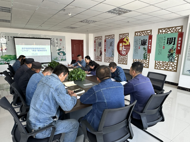 會(huì)上,集團(tuán)黨委委員、副總經(jīng)理秦翡同志以《關(guān)于如何在物流領(lǐng)域中踐行“二十大”“兩會(huì)”精神的思考》為題,從“前言及背景、‘二十大’報(bào)告相關(guān)原文、 2023‘兩會(huì)’政府工作報(bào)告相關(guān)原文、如何理解‘物流’和物流領(lǐng)域的發(fā)展展望”等五大方面為機(jī)關(guān)黨支部全體黨員深入淺出的講解黨的二十大報(bào)告中關(guān)于物流領(lǐng)域發(fā)展的新知識(shí),并詳細(xì)闡述了物流涵義及物流體系發(fā)展歷程,并從“數(shù)字化、智能化、環(huán)保綠色”三個(gè)方面對(duì)物流領(lǐng)域做出展望。