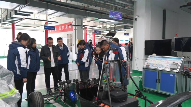 在參觀比亞迪E5純電動車實訓區(qū)時,大家看到了學院2023年全國行業(yè)職業(yè)技能大賽二等獎作品的技術“含金量”,饒有興趣地了解了繪圖-備材-制作-成型的具體過程,以及對轉動、逃生、行駛、焊接、拆裝、車架與車身的測試。高校的科研成果凝聚了工匠精神傳承和“惟專惟精、匠人匠心”的人才培養(yǎng)理念,在提升職業(yè)道德修養(yǎng)、增強專業(yè)技術能力、發(fā)展創(chuàng)新創(chuàng)業(yè)能力等方面全面融入了工匠精神培育。在場的黨員仔細觀摩,向創(chuàng)作單位投以敬佩的眼光。雙方在“工匠精神是培養(yǎng)高素質技術技能人才的目標導向,是推動產(chǎn)教融合、校企合作的重要實踐途徑”達成共識。