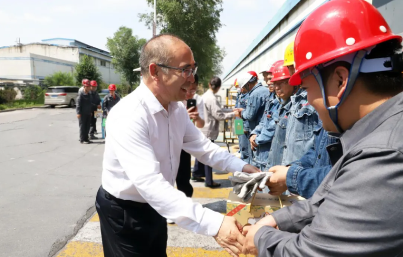 慰問現(xiàn)場,吳有禎與生產(chǎn)一線職工親切交流,詳細(xì)詢問大家的工作環(huán)境、勞動保護措施及防暑降溫落實情況,對職工們在高溫天氣下堅守崗位、辛勤付出的精神表示衷心感謝。他指出,炎炎夏日里,廣大干部職工搶抓生產(chǎn)黃金期,不懼酷暑,揮灑汗水,用實干實績?yōu)楝F(xiàn)代化新青海建設(shè)作出了貢獻(xiàn)。隨后,吳有禎一行將防暑降溫用品送到職工手中,同時叮囑公司負(fù)責(zé)人,要高度重視高溫天氣下的安全生產(chǎn)和職工勞動保護工作,合理調(diào)整作業(yè)時間,改善勞動條件,確保職工身體健康和生產(chǎn)安全。