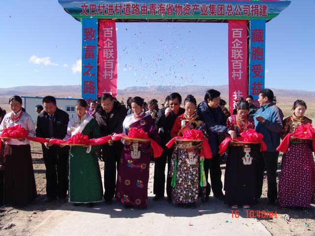 交接儀式上,集團(tuán)公司總經(jīng)理王玉輝、共和縣人大常委會主任尕瑪才讓為元者村黨員活動室、科普文化室、醫(yī)療衛(wèi)生室揭牌之后,與黨委書記白家林、紀(jì)委書記王仁芬、共和縣委常委、組織部長官卻南見等領(lǐng)導(dǎo)為共和縣黑馬河鄉(xiāng)文巴村進(jìn)村道路通車剪彩。集團(tuán)公司黨委書記白家林代表省物產(chǎn)集團(tuán)向共和縣江西溝鄉(xiāng)提前捐送元者村游牧民定居點(diǎn)工程配套資金100,000元。集團(tuán)公司紀(jì)委書記王仁芬、共和縣委常委、組織部長官卻南見、江西溝鄉(xiāng)元者村村長、文巴村村長分別代表捐建方、受捐方致辭發(fā)言。至此,青海物產(chǎn)集團(tuán)在"百企聯(lián)百村"活動中擬投入的1,455,500元,已到位1,255,500元。剩余的200,000元游牧民定居點(diǎn)工程建設(shè)項目捐款將根據(jù)工程進(jìn)度分期轉(zhuǎn)付。