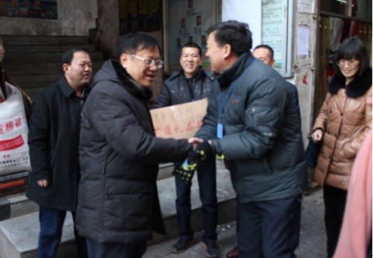 集團領(lǐng)導(dǎo)一行先后來到省三建公司汽配市場、三明市場、付家寨、平安分市場、臨空公司施工現(xiàn)場、朝陽物流和機電市場、配送公司倉庫、現(xiàn)代物流家美家具建材城、長春炭素、康寧公司、工業(yè)投資公司生產(chǎn)車間和項目現(xiàn)場、物產(chǎn)民爆公司倉庫以及物產(chǎn)汽貿(mào)公司上海大眾4S店等生產(chǎn)經(jīng)營第一線,深入了解春節(jié)期間生產(chǎn)經(jīng)營情況、安全生產(chǎn)情況,親切慰問堅守在一線的廣大員工,將慰問品分發(fā)到值守人員手中,帶去集團領(lǐng)導(dǎo)暖暖的問候和衷心的祝福。每到一處,集團領(lǐng)導(dǎo)同一線員工一一握手,詳細(xì)詢問節(jié)日期間值班和職工生活安排情況,同時對堅守崗位的職工給予充分的肯定和高度的贊揚,為他們在節(jié)日期間舍小家為大家的奉獻(xiàn)精神表示衷心的感謝。王玉輝總經(jīng)理情深意長地說:正是因為有了一線員工的勤奮和努力,才確保了集團系統(tǒng)生產(chǎn)經(jīng)營的平穩(wěn)運行,感謝大家!同時要求所屬公司領(lǐng)導(dǎo)春節(jié)期間一定要安排好職工的生產(chǎn)生活,并做好各項安全防范工作。